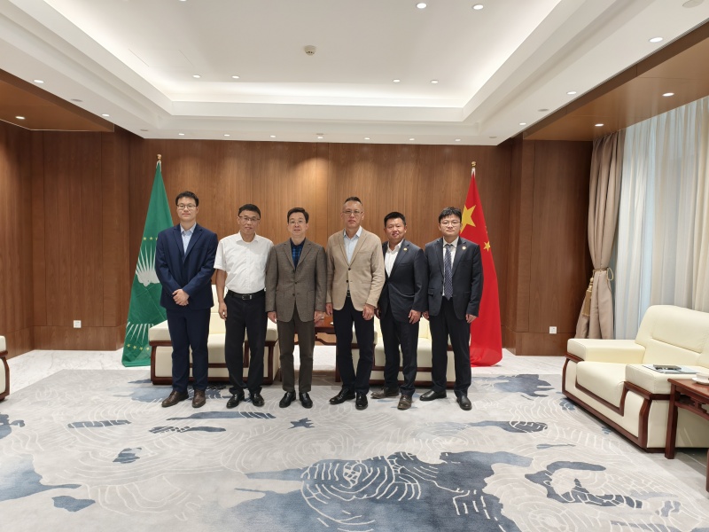 11月4日,驻非盟使团团长蒋烽大使会见湖南省中非经贸合作促进研究会执行秘书长孙国强一行。吕瑞浩公参在座。