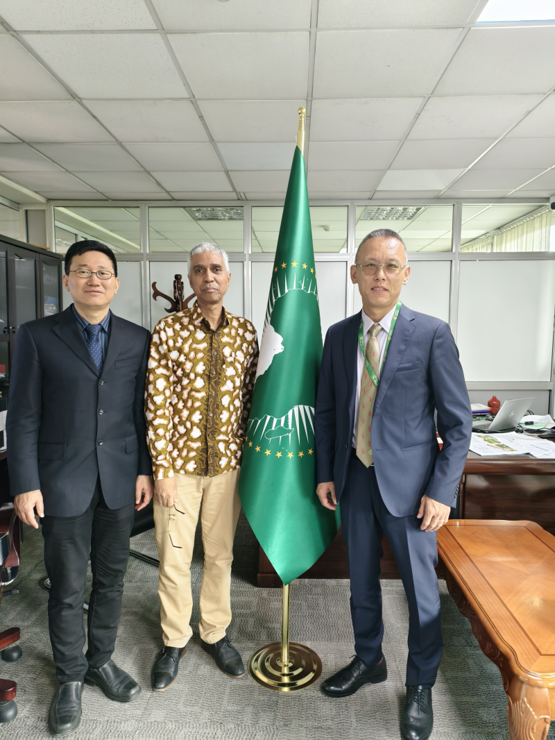 10月9日,驻非盟使团经商处吕瑞浩公参先后会见非盟委员会运行支持司司长里科、经贸委员秘书曼迪,双方就加强对非经贸合作等事宜进行深入交流。王立贵参赞、马志鹏随员参加。