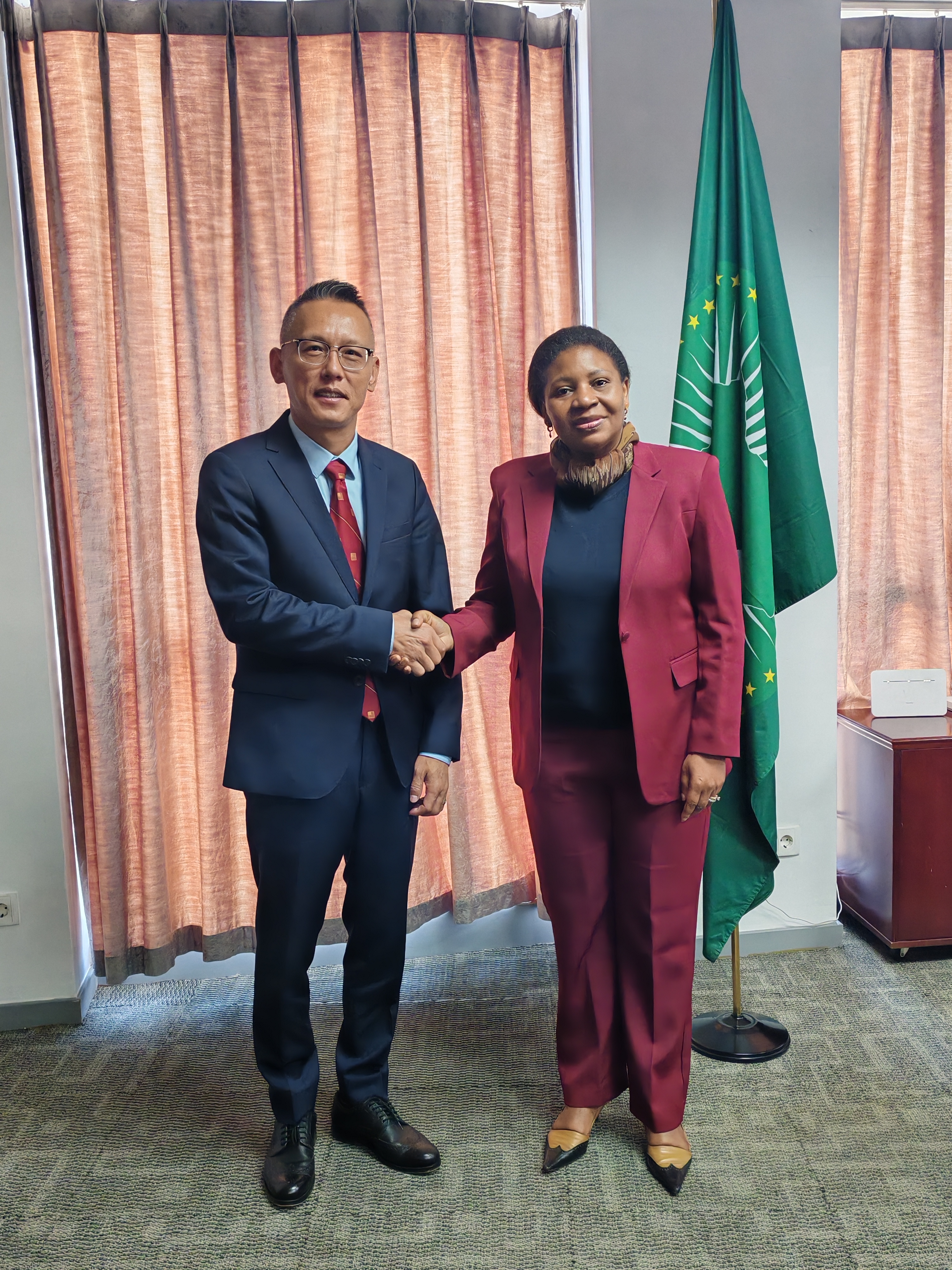 1月8日,驻非盟使团经商处吕瑞浩公参会见非盟经贸委员贝洛贝女士。双方就加强中非经贸合作等事宜进行深入交流。秦璐二秘、马志鹏随员参加。