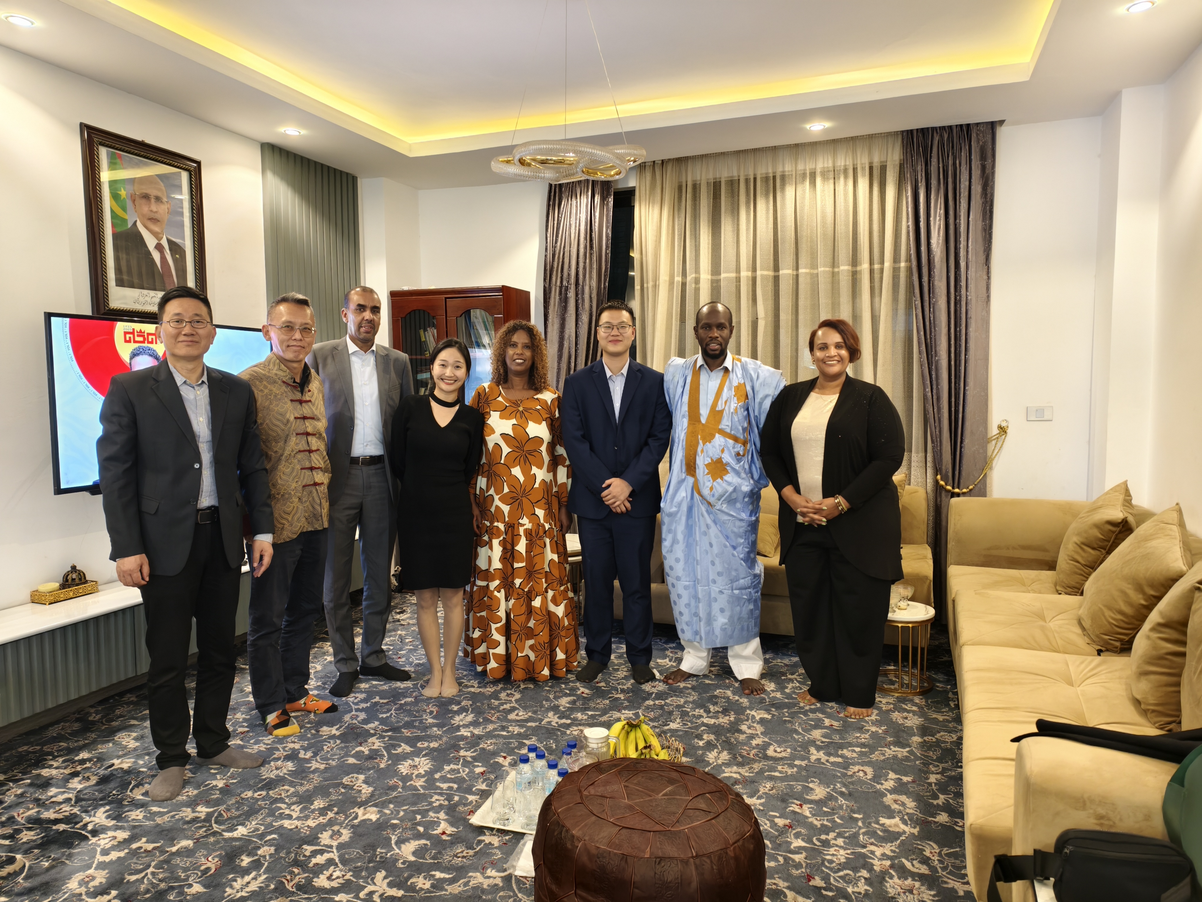 1月28日,吕瑞浩公参受邀赴非盟工会主席迪拉姆家中做客,非盟会议管理司司长兼运行支持司代司长纳哈、工会副主席萨那伊特、使团王立贵参赞等在座。双方就赓续传统友谊,深化务实合作等进行交流。
