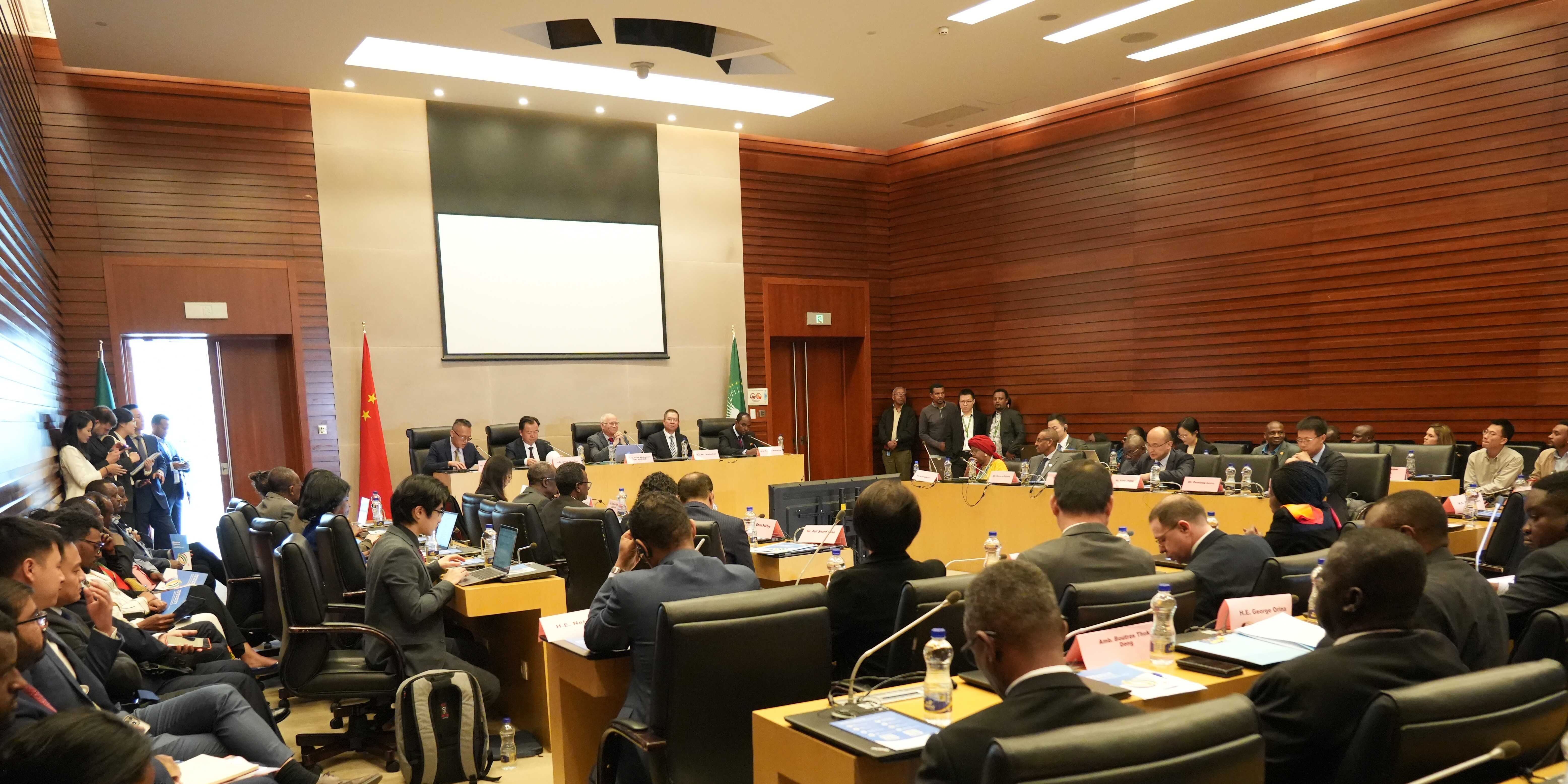 10月10日,驻非盟使团同国家国际发展合作署、非盟委员会在非盟总部联合举办全球发展倡议对话会。胡长春大使、赵峰涛副署长、非盟委员贝荷欣、联合国非经委副执秘莫西、埃塞俄比亚劳工部国务部长特沙莱出席并致辞。来自联合国、非盟机构、外交使团及企业代表200余人与会,使团吕瑞浩公参主持。