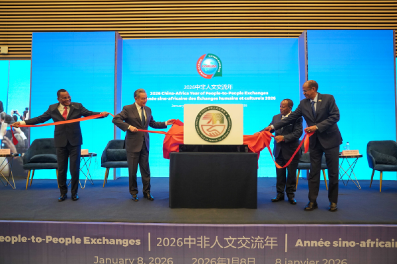 当地时间2026年1月8日,2026年“中非人文交流年”开幕式在亚的斯亚贝巴非盟总部举行。中共中央政治局委员、外交部长王毅出席,宣读习近平主席贺信并作主旨发言,中非合作论坛非方共同主席国刚果(布)外长加科索、非盟委员会主席优素福、埃塞俄比亚总统塔耶先后致辞。非盟委员会及非盟机构高层官员、非洲各国驻非盟使节、联合国机构高级别代表、埃塞政府及各界代表200余人出席。
