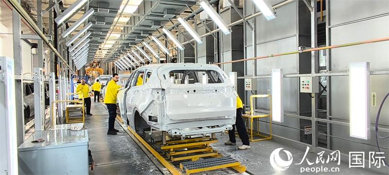 在总装涂装工厂,工人们正在对汽车进行检测 人民网记者 黄培昭摄